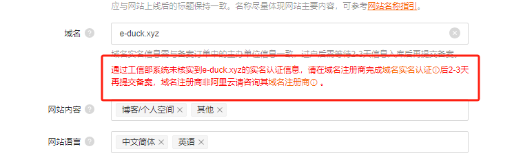 但比较坑的是阿里实名认证完还得入库工信部系统,这得花2-3天的时间,